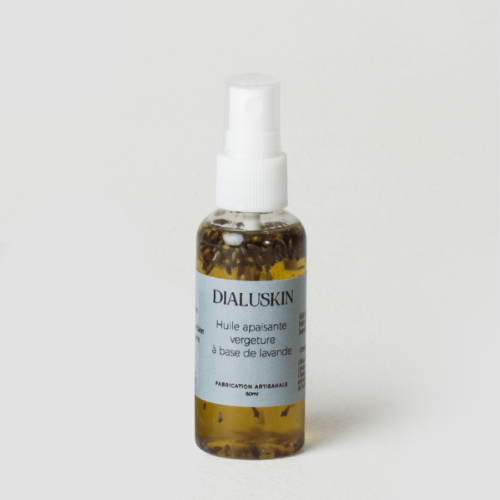 Huile d’amande douce, huile d’avocat, huile d’olive, lavande séchée, vitamine E